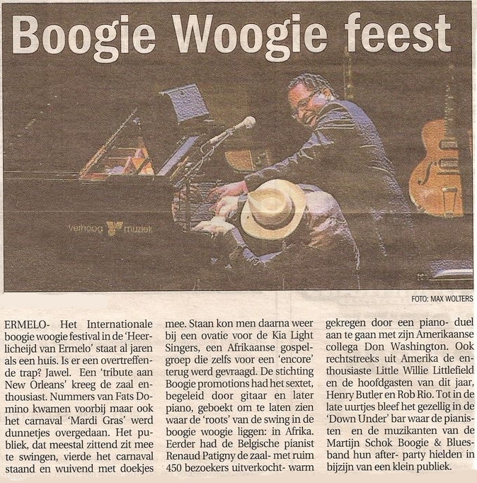 | Pers De Stentor In de Stentor van maandag 10 maart 2008 is een recensie verschenen van het Internationale Boogie Woogie Festival Holland 2008. Om het artikel te lezen kunt u hier clicken. |