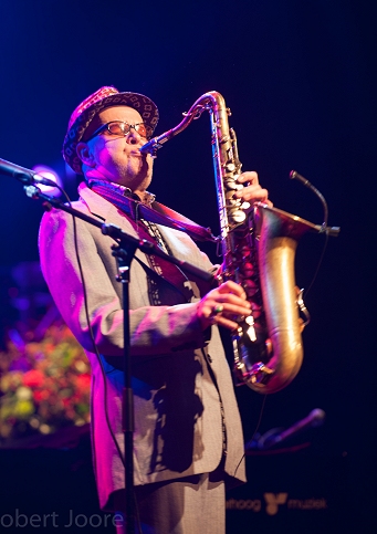 Ruigrok (contrabas en basgitaar) Na het afronden van zijn studie aan het Conservatorium in 1986 toerde Hans Ruigrok (1955) 7 jaar door West Europa met het Glenn Miller orkest van Wil Salden. Hij speelt en speelde ondermeer met PB and the Nighttrain, Max Teawhistle, Big Jay McNeely, Georgie Fame, Johnny Meijer, Bolle Jan Froger, Rinus Groeneveld, Wouter Kiers en vele anderen. Zijn voorkeur gaat uit naar Jazz, Boogie Woogie, Blues en Soul. Maar ook de Amsterdamsche Accordeonmuziek draagt hij een warm hart toe. Tevens runt hij Jazzcafe 't Geveltje in Amsterdam. |